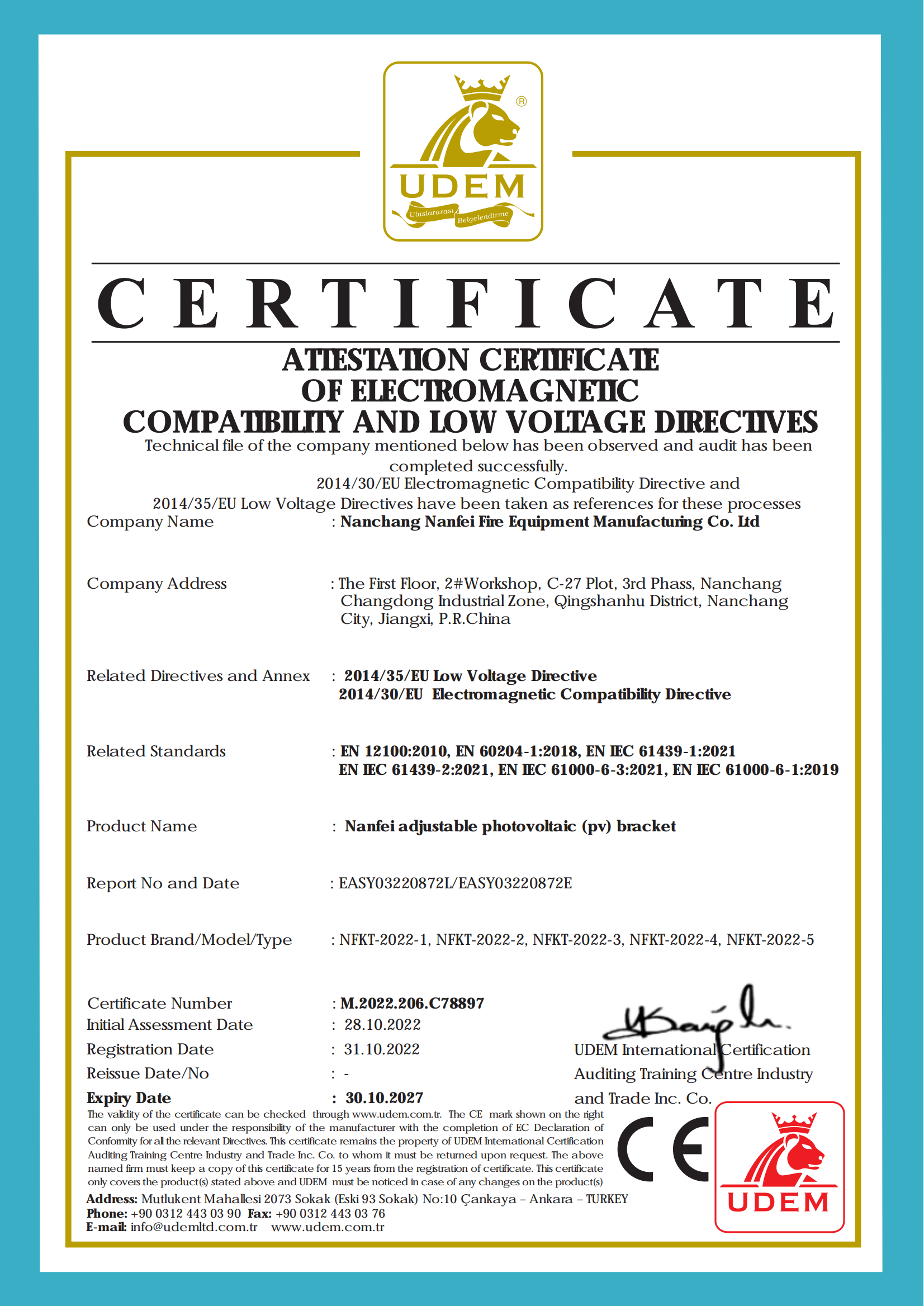Nanchang Nanfei Fire Equipment Manufacturing Co., Ltd.(hereinafter referred to as NCNF)--Solar Mounting Solution Supplier. NCNF is leading high-tech enterprise in 1994, registeration capital USD 10.8Million, a professional manufacturer and exporter specialized in R&D, production and sales of solar mounting system, our headquarter is located in Nanchang City, Jiangxi province, near Shanghai city. Nanchang Nanfei Technology Co., Ltd. and Nanfei New Energy Technology(Hebei) Co., Ltd. are NCNF's subsidiaries.